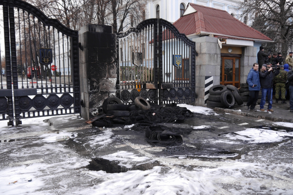 Невдоволені люди підпалили у воріт міністерства з десяток шин і перекрили Повітрофлотський проспект, внаслідок чого утворилася велика пробка. Прямо на дорозі, мітингучі поставили три металевих бочки і б'ють по них дерев'яними палицями.
