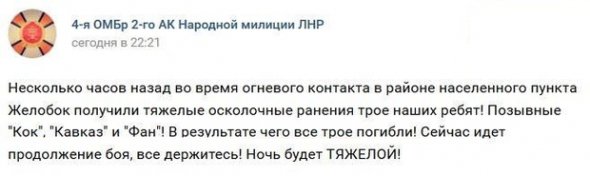 Ресурси терористів також повідомляють про трьох загиблих бойовиків.