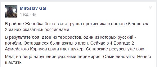 "В результаті бою, двоє з терористів, один з яких росіянин - загинули. Решта були взяті в полон", - написав Гай.