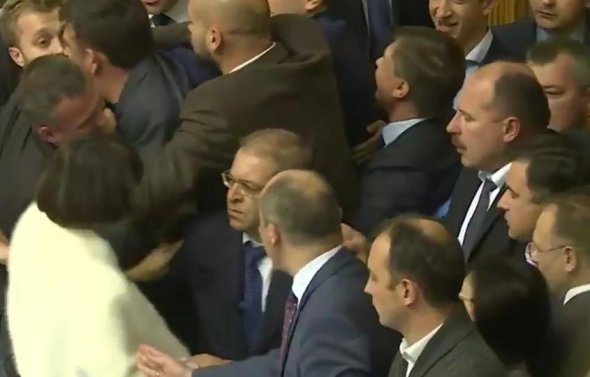 Нардеп Єгор Соболєв почав крутити мікрофон спікера. Також збіглися позафракційні депутати і представники "Народного фронту".