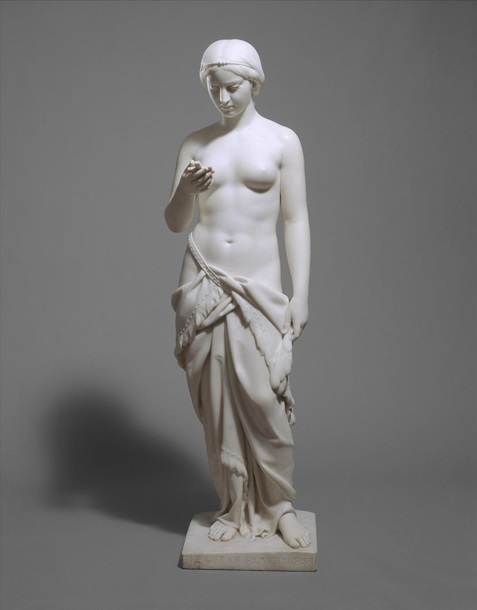 Видання повідомляє, що статуя була створена скульптором Ерастусом Доу Палмером близько 160 років тому. Статуя має назву "Індіанська дівчинка, або Схід християнства" і зображує напівоголену молоду жінку, яка тримає в правій руці розп'яття.