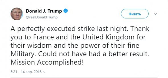 "Складно собі уявити результат краще. Місія виконана" - Трамп про авіаудари в Сирії