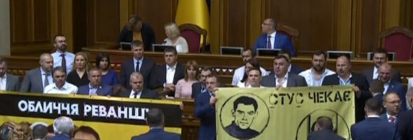 У Верховній Раді вшанували хвилиною мовчання українського дисидента Василя Стуса. Низка нардепів вийшли до трибуни парламенту з плакатами.