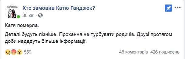Про це йдеться в повідомленні на сторінці Хто замовив Катю Гандзюк? у Facebook.