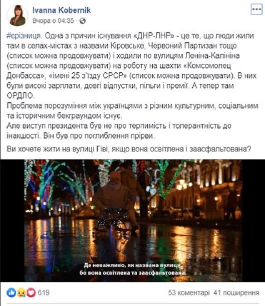 "Адже ми представляємо його (майбутнє) однаково. Це успішна і процвітаюча країна, де немає війни. Країна, яка повернула своїх людей і свої території. Де не важливо, як названа вулиця, тому що вона освітлена і заасфальтована. Де немає різниці, біля якого пам'ятника ти чекаєш дівчину, в яку ти закоханий", - сказав Зеленський, вітаючи країну з Новим роком.
