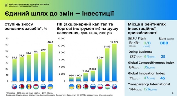 При цьому в 2019 році приплив прямих іноземних інвестицій в Україну склав $2,5 млрд. За рік їхній обсяг зріс лише на $100 млн.