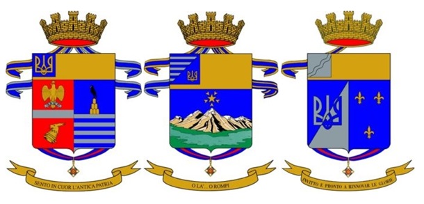 Український тризуб присутній на гербах італійської армії. Їхнім підрозділам дозволено додавати до своїх гербів символи територій, де була отримана медаль за військову доблесть. Під час Другої світової війни 8-а Армія Італії була направлена в Радянський Союз, на територію України. Хоча тут її практично знищили, деякі все ж повернулися додому. Було сформовано нове військо, якому дозволили додати український тризуб на свої герби, як символ того, що на цій території ними була отримана медаль за доблесть.