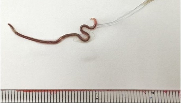 Хірург витяг з її горла черв'яка довжиною чотири сантиметри, що належить до виду Pseudoterranova azarasi. Паразит, судячи з усього, потрапив у горло з сирою рибою.