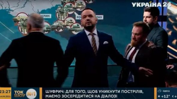 Камельчук кинувся до Шуфрича, але депутатів розборонив ведучий.