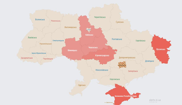 Йдеться про Вінницьку, Київську, Черкаську, Кіровоградську області. Існує загроза застосування ворожих ракет та ударних БпЛА.