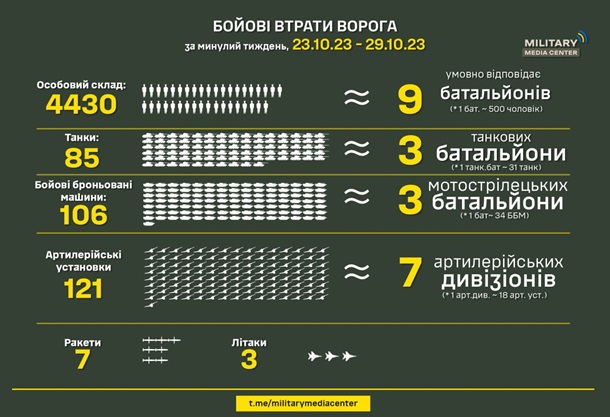 Також у період з 23 по 29 жовтня росіяни втратили: