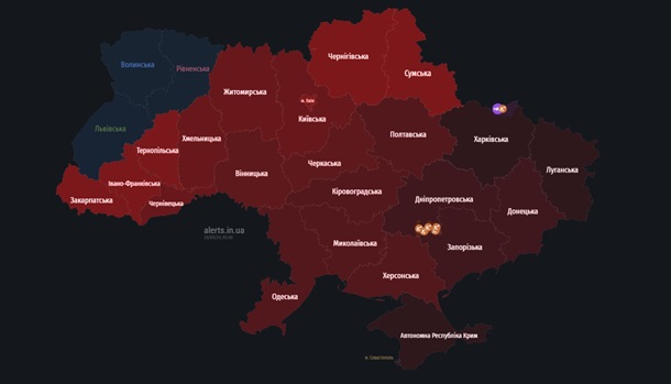 Мапа повітряних тривог станом на 3:30 мала такий вигляд:
